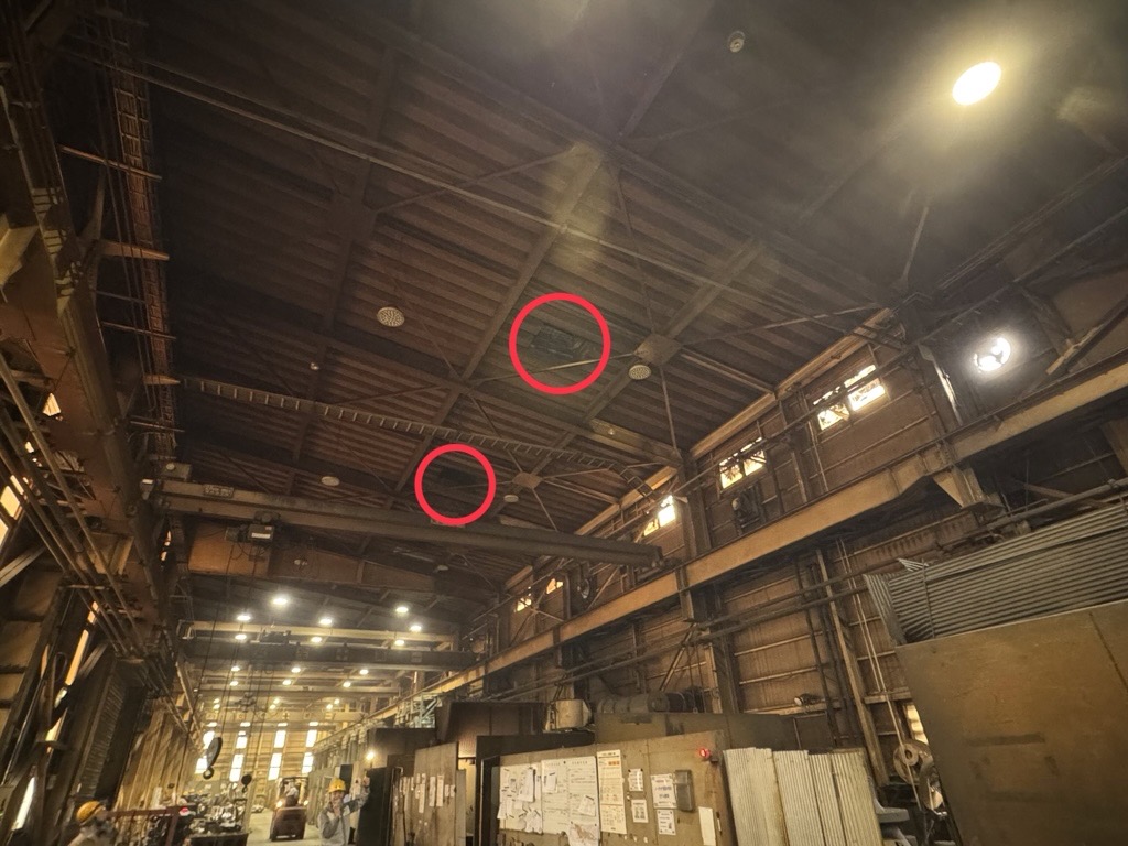 これまでも工場内の暑さ対策は検討しており、工場内の天井が高く、面積が大きいことや、定点作業ではなく移動作業が多いこと、砂塵が舞っているためフィルターが詰まりやすいことなどの課題が多くあげられていました。様々な対策を検討した結果、最終的に遮熱塗料と大型の屋上換気扇ルーフファンの導入に至りました。